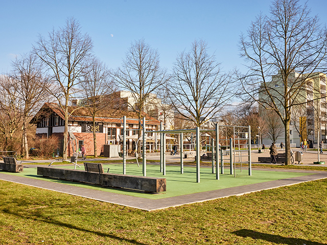 Zwischen den Eventflächen bieten mehrere Sitzbänke Möglichkeiten zum Aufenthalt. Der Wochenmarkt bleibt an diesem Standort erhalten und wurde nur für einen Teil der Bauphase auf die benachbarte Grünfläche verlegt. Auch die Kirmes wird künftig auf der Platzfläche stattfinden. In der Oxforder Passage ist ein Outdoor-Gym mit Fitnessgeräten und einem Fallschutzbelag fertiggestellt worden. Der Übergangsbereich zur Brücke über die Willi-Suth-Allee wurde mit Bäumen neu gefasst und mit einem Schachspiel belebt.