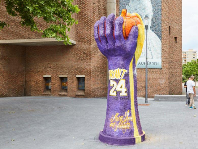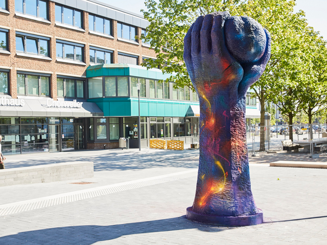 Die auf dem Pariser Platz stehende Skulptur mit dem Titel "Tomate" erhielt in der zweiten Jahreshälfte 2020 immer wieder ein neues Aussehen. Der ortsansässige Graffiti-Künstler Puya Bagheri hatte die Skulptur in mehreren Schritten neu gestaltet.