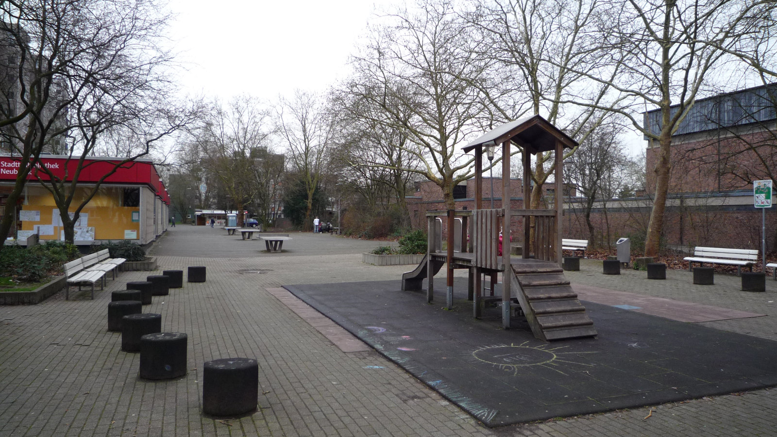 Der Platz An St. Adelheid bildet den Mittelpunkt des Stadtteils Neubrück. Durch seine Größe, Lage und Funktion als Marktplatz sowie Verbindungsglied der einzelnen Siedlungsteile ist er von besonderer stadträumlicher Bedeutung. Wir haben den Platz modernisiert und den Bedürfnissen der Bewohnenden angepasst. Es wurden Begegnungs-, Spiel und Aktivitätszonen eingerichtet, die für die Ansprüche der unterschiedlichen Altersgruppen geeignet sind. Die Anwohnenden haben wir bei der Umgestaltung beteiligt und auch die Wünsche und Interessen der Kinder und Jugendlichen soweit wie möglich berücksichtigt.