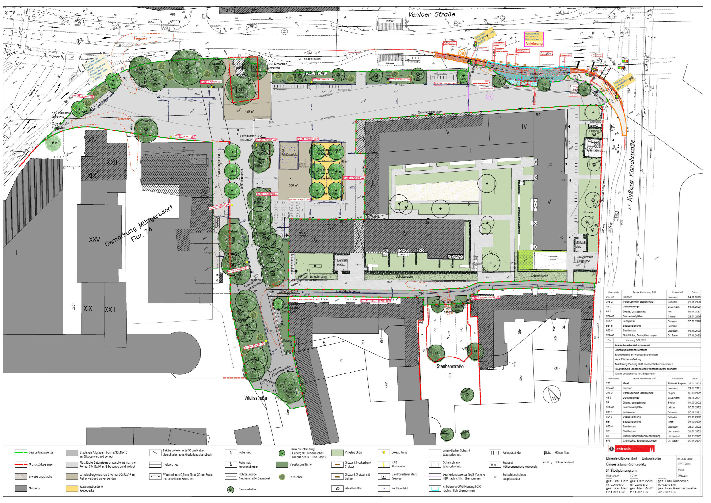 Die Vorentwurfsplanung zur Umgestaltung haben wir 2018 mit reger Beteiligung der Bürger*innen und Anwohnenden durchgeführt. Im Juli 2018 haben wir die Planung öffentlich vorgestellt. Parallel zur Erarbeitung der Vorentwurfsplanung der Platzfläche hat die GAG ihren neben dem Plangebiet liegenden neuen Gebäudekomplex fertiggestellt.