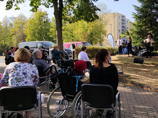 Das Projekt "Ich erinnere mich noch daran!" für ältere Menschen und Menschen mit Behinderung, die in Wohnheimen oder Pflegeeinrichtungen leben, umfasste eine Konzertreihe, die an drei aufeinanderfolgenden Tagen jeweils in einer Pflege- oder Wohneinrichtung, unter Berücksichtigung der Coronaschutzverordnung, im September 2020 stattfand. Zu diesen Einrichtungen gehörten die Lebenshilfe für Menschen mit geistiger Behinderung e. V., die Lebenshilfe Köln in Chorweiler Nord, das Marie-Juchacz-Zentrum der Arbeiterwohlfahrt in Chorweiler-Mitte und das Lazarus-Haus in Blumenberg. Als Besonderheit wurden auf diesen Konzerten ausschließlich Lieder gespielt, die zuvor von der Bewohnerschaft der Einrichtungen gewünscht wurden.