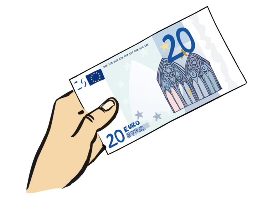 Das heißt, Sie können mit Geld-Scheinen und Münzen bezahlen.