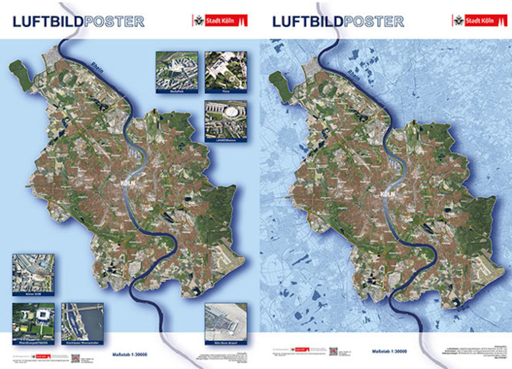 Das Luftbildposter haben wir auf Basis der aktuellsten Luftbilder von Köln von 2020 erstellt. Es bildet das gesamte Stadtgebiet ab. Sie können das Poster zur Orientierung im Stadtbild verwenden, da alle aus der Luft sichtbaren Objekte der Erdoberfläche erkennbar sind. Es eignet sich auch als Wandschmuck oder Geschenk.