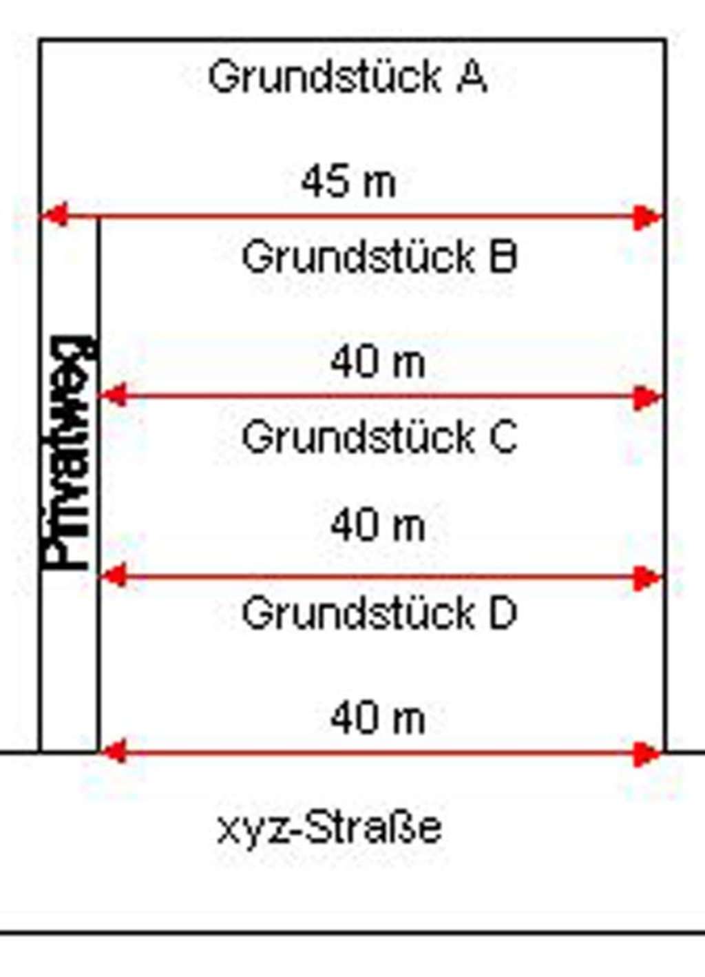 Das Grundstück A grenzt mit einer Länge von 40 Metern, das Grundstück B mit 20 Metern an die xyz-Straße an.