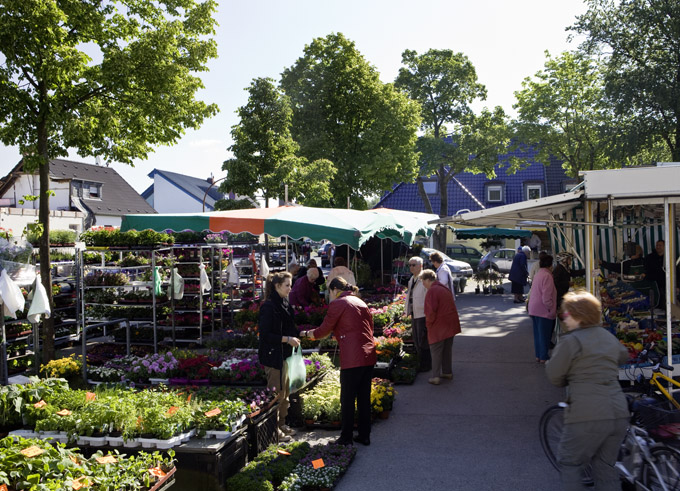 Der Wochenmarkt auf dem Wupperplatz in Köln-Höhenhaus findet immer mittwochs und samstags statt.